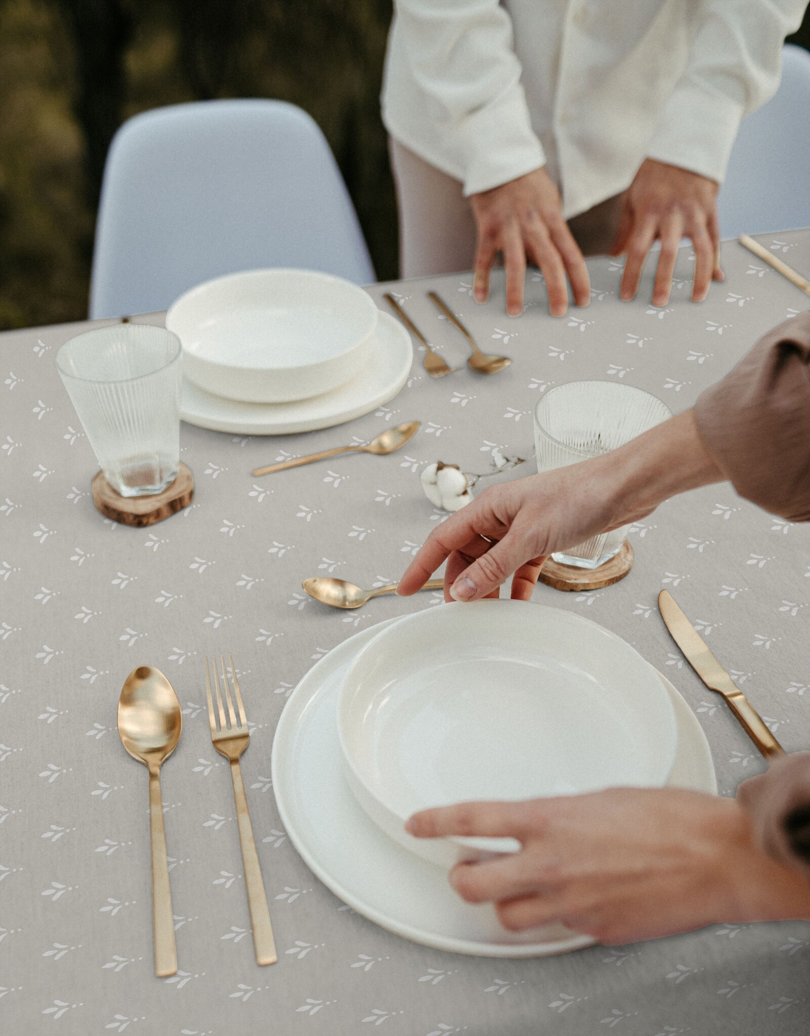 A trendy coated table linen with a beautiful design. This table linen fits perfectly into any modern and rustic interior and adds atmosphere to any room! Thanks to its special coating, this tablecloth not only has the look and feel of a luxurious linen tablecloth, but is also water-repellent and protects your table from stains and rings.