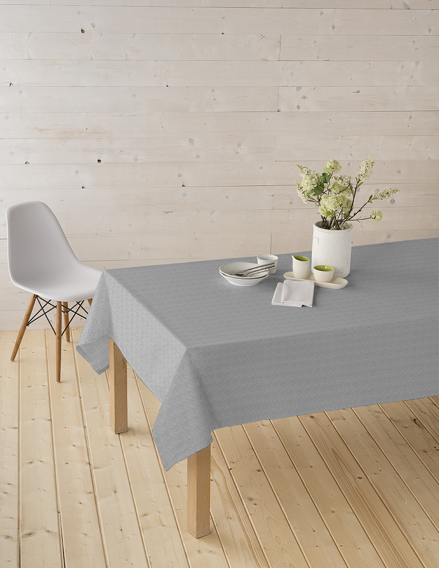 This silver-coloured table linen has a luxurious glittery look and gives any room an instant atmosphere. Suitable for your festive table! Thanks to the special coating, this tablecloth not only has the look and feel of a luxury linen tablecloth but is water-repellent and protects your table from stains and rings.